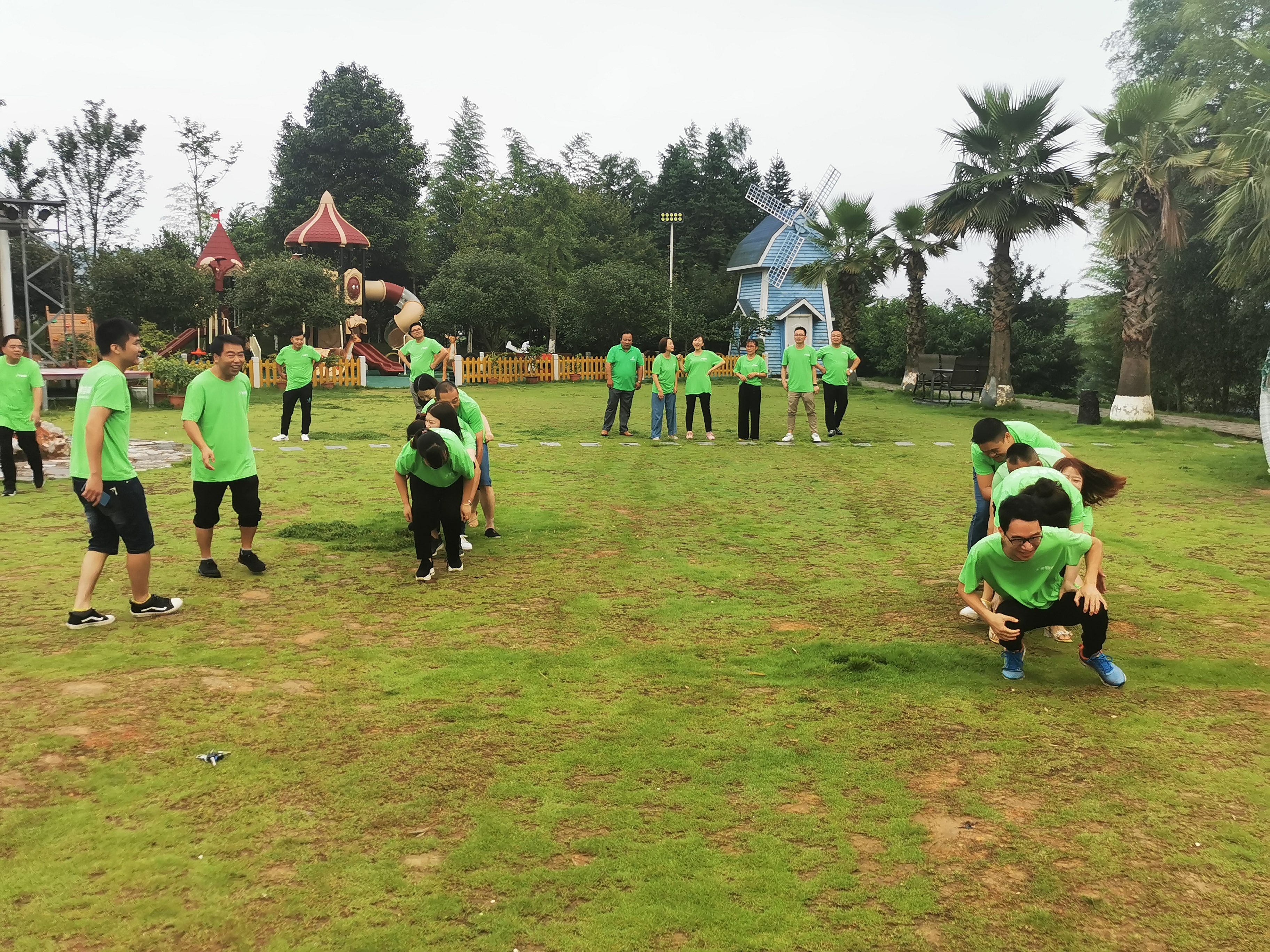 在歡聲笑語中我們進行了第二個活動項目—《人椅》,此項目主要培養(yǎng)團隊協(xié)作、強化責任的意識,把自己的后背交給一起戰(zhàn)斗的伙伴,團隊之間的信任是這個項目的關(guān)鍵,兩隊在這個項目中,表現(xiàn)出來對同事之間的信任,讓大家很順利的全部完成比賽。